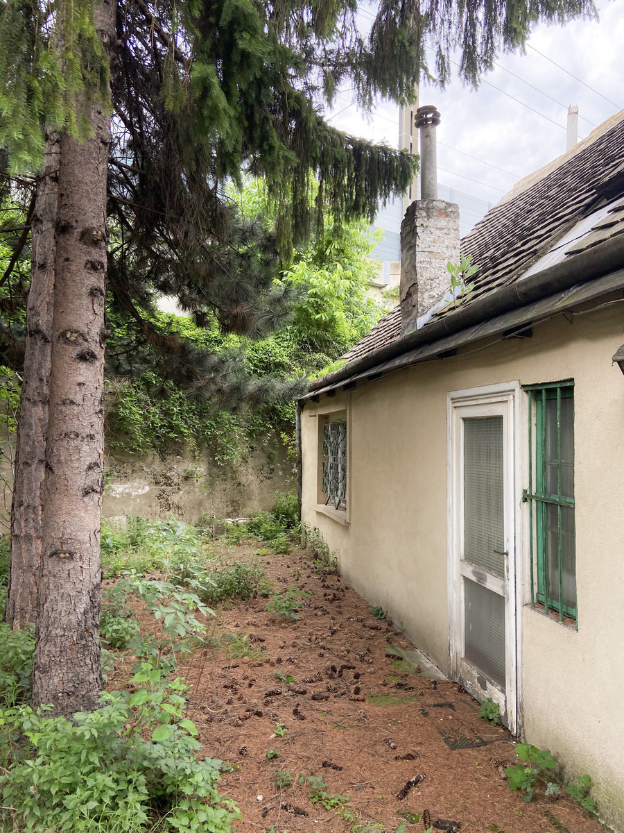 The room is one of many exhibition spaces within the formerly residential venue which housed Haus in Vienna in September of 2020––a small-scale, community-organized art fair. The fair organizers, in their open call, invited artists to exhibit in areas which “range from derelict living spaces (empty rooms, kitchen, bathroom etc) to garages of various sizes as well as the courtyard and the backyard.” The derelict nature of the house––whose origin story I know nothing about––announced itself as a collaborator. How to poetically intervene in this space?